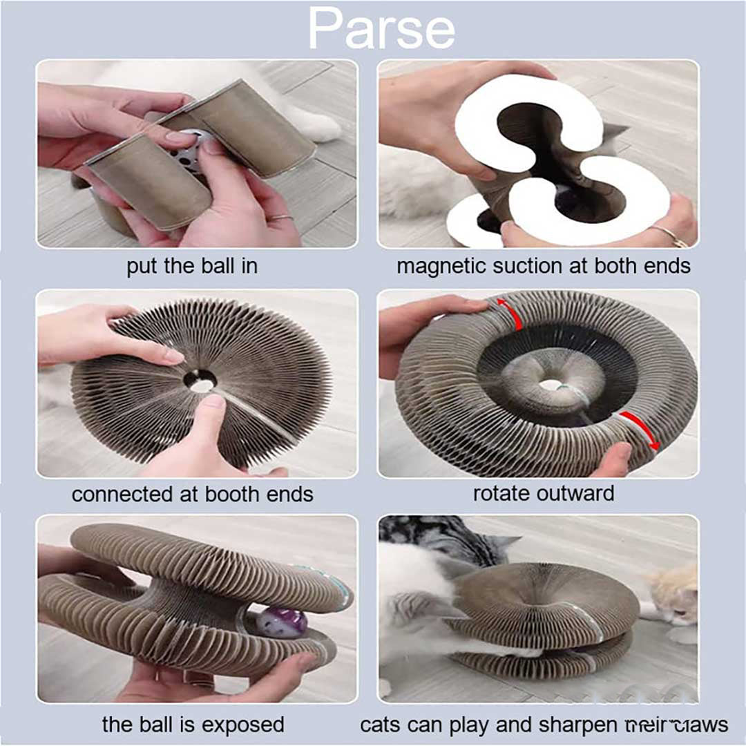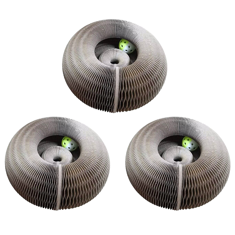 1️⃣ Unique and Flexible Design: The Foldable Scratch Board boasts a one-of-a-kind round shape with porous walls that can be easily bent and reshaped into various spherical configurations. This innovative feature allows you to customize the scratching post to your cat's preference, providing them with a fresh and exciting scratching experience every time.